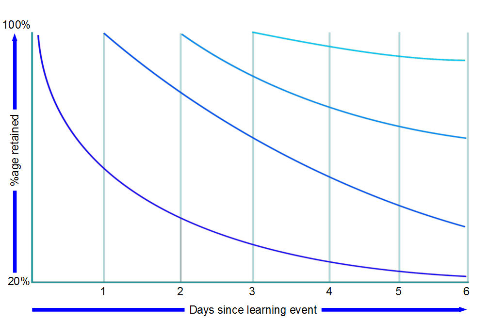 But it's not all bad news. Professor Ebbinghaus also showed that if you reinforce that learning, you can push retention back up to 100%, and it then drops off more slowly.